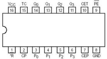 其中,CP表示时钟输入端,MR表示清零输入端,CET和CEP为并行加载输入端,Qn表示输出端的当前状态,Dn表示并行加载的数据值。
